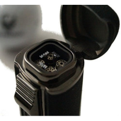 Mit 4 Flammen, Mit ausklappbarem Zigarrenbohrer, leicht aufgraute und sehr griffige Oberfläche
