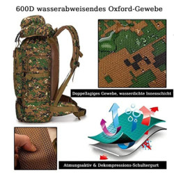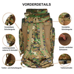 • Groß Rucksack 60l - 80l, Outdoor Military Rucksack fur Herren Camouflage Notfallrucksack Wasserdicht Survival Gefüllt Fluchtr