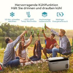 【Schnelle Kühlung in 15 Minuten】 Der leistungsstarke Kompressor-Kühlschrank mit Gefrierfach bietet ein stabiles, zuverlässiges und energiesparendes Kühlsystem. Er senkt die Temperatur in 15 Minuten von 20 °C auf 0 °C. Und die extra dicke Isolierung des Autokühlschranks sorgt dafür, dass der gut verschlossene Deckel die Lebensmittel auch nach dem Schließen noch stundenlang frisch oder gefroren hält, selbst wenn der Netzstecker gezogen ist.