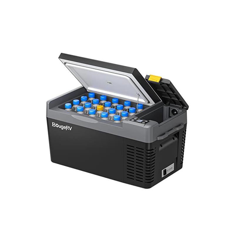 【4 Befestigungspunkte Design】Der CRPRO Auto-Kühlschrank kann mit Seilen durch vier Löcher auf beiden Seiten an dem LKW, dem Sitz und anderen glatten Oberflächen befestigt werden. So brauchen Sie sich keine Sorgen zu machen, dass sich der Kühlschrank beim Fahren bewegt.