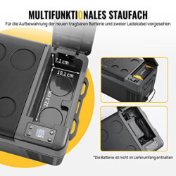 【Praktisches Staufach】Die CRPRO Kompressor-Kühlbox verfügt über ein multifunktionales Staufach, in dem Sie die 220Wh Powerstation (MUSS SEPARAT ERWORBEN WERDEN!) für den Kühlschrank oder die mitgelieferten Ladekabel unterbringen können, um die Laufzeit des Kühlschranks zu verlängern und einem Verlust der Kabel vorzubeugen.
