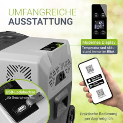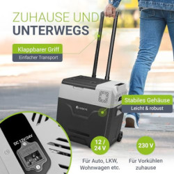 ✅ Zuhause & unterwegs: Elektrische Kühlbox mit Kompressor; 12/24 V Anschluss ideal für Auto, LKW, Reisemobil; 230 V Anschluss für den Betrieb und das Vorkühlen an der Steckdose