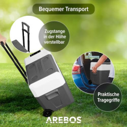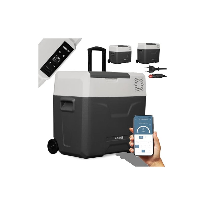 • Arebos Kompressor Kühlbox mit Rollen 47 Liter | Elektrische Gefrierbox mit APP & Smart-Steuerung | Mobile Kühltruhe mit USB-A