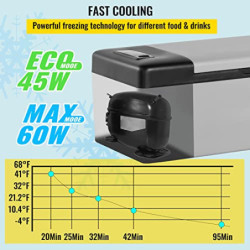 【MAX / ECO-MODUS】 - Der leistungsstarke Kompressor sorgt für ein hocheffizientes Kühlsystem. Bei präziser Steuerung der Temperatur von -20 ℃ bis 10 ℃ (-4 ℉ bis 50 ℉) kann es sich um einen Kühlschrank oder eine Gefriertruhe handeln. Außerdem verfügt der Kühlschrank über ein ausgezeichnetes Wärmeableitungssystem und einen extrem leisen Betrieb von nur 45 dB. Für verschiedene Anforderungen stehen zwei verschiedene Modi (MAX / ECO-Modus) zur Verfügung.