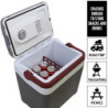 24 L Capacity Travel Cooler: With a 24 litre capacity, this compact portable cooler holds up to 31 standard soft drink cans and is tall enough to fit 2L bottles standing upright