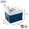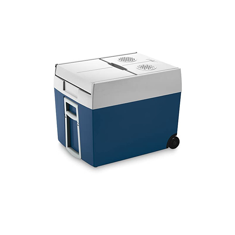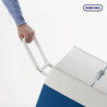 Zwei robuste Räder, ein ausziehbarer Griff und seitliche Griffe zum Hochheben für den einfachen Transport