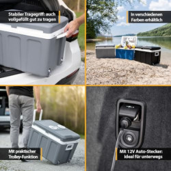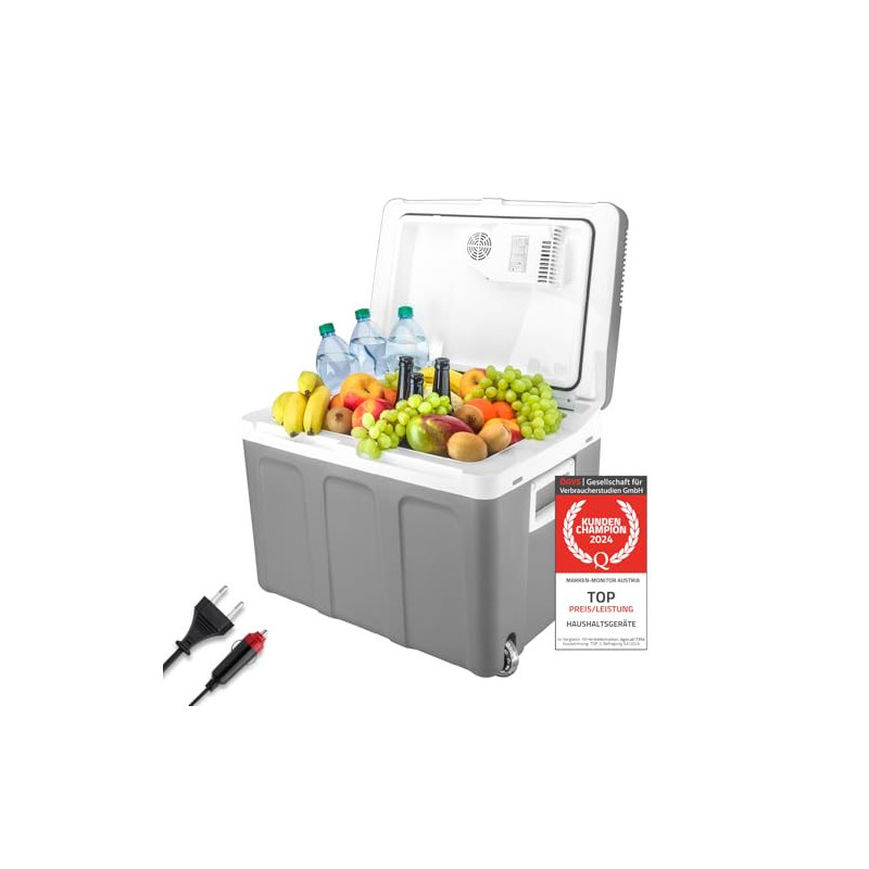 IHR PRAKTISCHER BEGLEITER: Auf Reisen, beim Campen oder bei der Gartenparty daheim: die mobile Kühlbox versorgt Sie mit gekühlten Getränken und optimal temperierten Snacks für zwischendurch. Mit großen Netto-Fassungsvermögen von 40 Litern. Senkrecht aufgestellt ist die Box außerdem als mobiler Mini-Kühlschrank verwendbar.