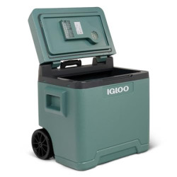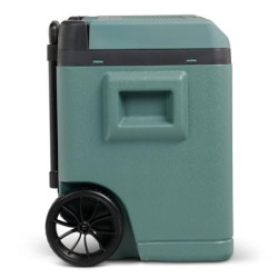 Durchdachte Konstruktion: Der Teleskopgriff und die großen Räder ermöglichen einen entspannten Transport der befüllten Kühlbox.