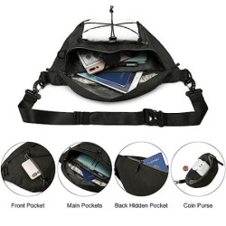 【RFID-Schutz】: Versteckte Tasche auf der Rückseite dieser Bauchtasche, die das RFID-Signal blockiert, um Ihren Personalausweis, Ihre Bankkarte oder Ihr Telefon vor dem Scannen und Diebstahl zu schützen. Es kann auch Ihre Informationssicherheit an öffentlichen Orten schützen.