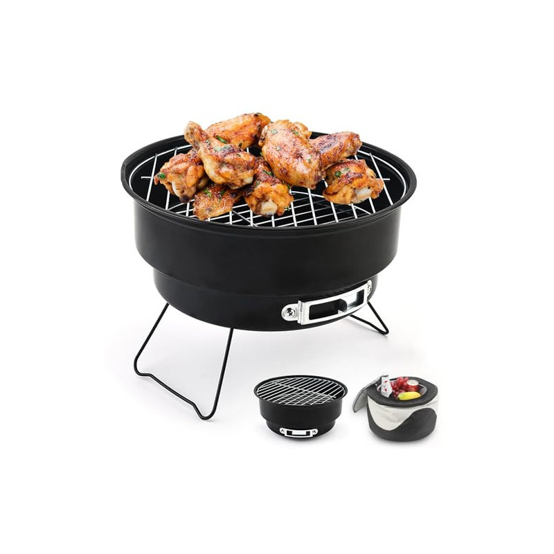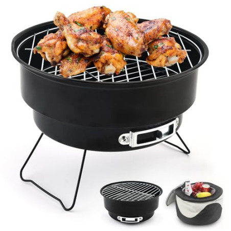 EINFACH ZU BENUTZEN - Der kleine Grill erfordert keine Installation. Wenn Sie im Freien grillen möchten, senken Sie einfach die klappbaren Beine ab und beginnen Sie mit dem Grillen. Der Mini-Grill hat Lüftungslöcher an einem Ende, wodurch sich der Luftstrom leicht kontrollieren und die Hitze gleichmäßig im gesamten Grill verteilen lässt. Die Grillschale kann sauber abgenommen werden und ist sehr praktisch.