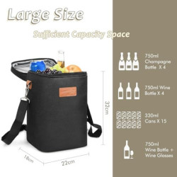 【Tragbar und perfekt für unterwegs】 Mit robusten Ledergriffen und verstellbaren Schultergurten zum Tragen von Wein und Bier kann es auch als Picknicktasche verwendet werden. 21,8" x 18" x 31,75" (L x B x H)