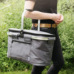 DETAILS: Abmaße - 43x26x26cm (ohne Henkel) / Gewicht: 570g / 27l Fassungsvermögen / extra Seitentasche / Stoff außen: reißfestes Polyester / Aluminium Rahmen / isoliert durch PEVA-Folie innen / rutschfester Griff aus Gummi