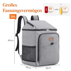 VIEL PLATZ: Das maximale Fassungsvermögen beträgt ca. 26L. Die Gesamtmaße betragen ca. 32 x 25 x 40 cm (L x B x H). In der geräumigen kühlrucksack können Sie Mahlzeiten, Bier, Wein, Snacks, Obst und andere Reiseutensilien für die ganze Familie verstauen.