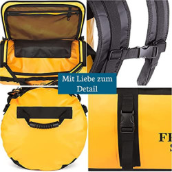 ROBUSTES MATERIAL: Die Duffelbags sind aus reißfestem 500D Industrie-PVC (LKW Plane) gefertigt und mit hochwertigen Reißverschlüssen ausgestattet. Wasserdichte, langlebige Materialien und Hochfrequenz-Schweißnähte verleihen den Travel Bag eine sehr hohe Wasserresistenz. Nicht 100% wasserdicht aufgrund der Reißverschlüsse.