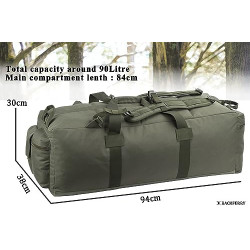 Diese riesige Reisetasche im Armeestil erfüllt alle Ihre Anforderungen für Reisen, Sport oder Outdoor-Aktivitäten. Ein Hauptfach von oben mit Reißverschluss und 6 Außentaschen für schnellen Zugriff. Hauptfach ist ca. 72L. 6 Außentaschen sind ca. 8L. Gesamtgröße: 92 cm Breite x 32 cm Tiefe x 30 cm Höhe.