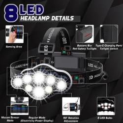 NEU AUFGESTELLTE BEWEGUNGSSENSOR-FUNKTION , LANGE DRÜCKFUNKTION LED-Stirnlampen:Neue Version, unsere Stirnlampe hat eine lange Druckfunktion und Bewegungssensor-Funktion hinzugefügt.Wenn Sie die Schlüsselmodus-Taste in einem beliebigen Modus drücken und halten, können Sie das Licht direkt ausschalten und müssen nicht mehr durch alle Modi gehen.Im Sensor-Modus können Sie die Stirnlampe durch Handbewegungen steuern.Hochleistungs-LED-Stirnlampe robust, langlebig und leicht.