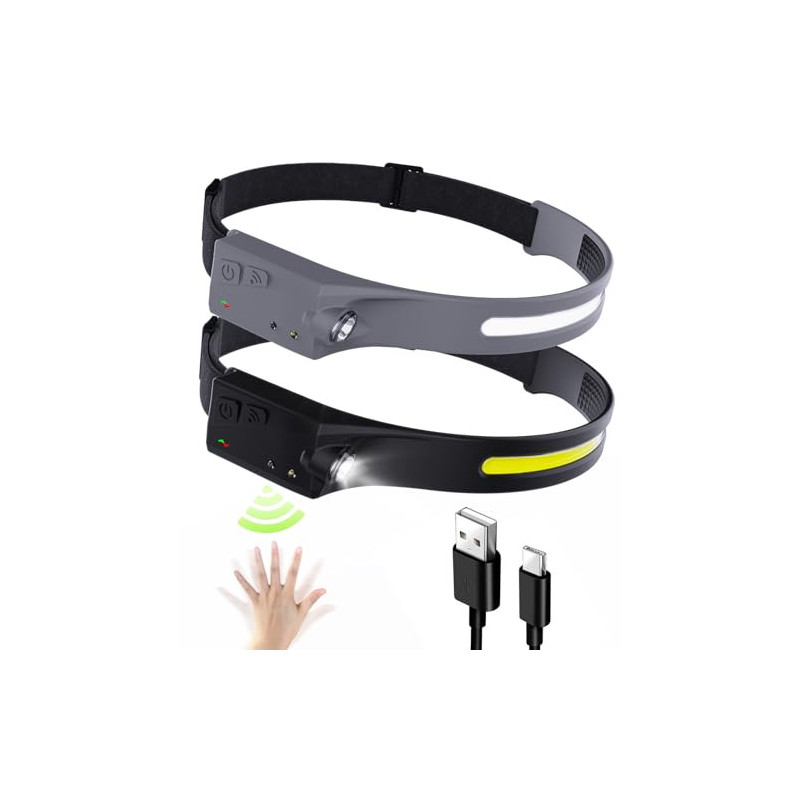 [5 Lichtmodi und Welleninduktion]- Die LED-Stirnlampen verfügen über 5 Lichtmodi und sind einfach zu bedienen. XPE LED-Licht: Hoch (100%)/Niedrig (40%), COB-Licht: Hoch (100%)/Niedrig (40%). Wenn Sie die Camping-Stirnlampe einschalten und den Einschaltknopf 3-5 Sekunden lang gedrückt halten, blinken sowohl das COB-Licht als auch das LED-Licht. Die Stirnlampe ist mit einem seitlichen Welleninduktionssensor und einer One-Touch-Schnalle ausgestattet.