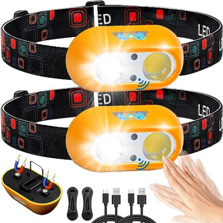 🔦【Bewegungssensormodus】Die wiederaufladbare Stirnlampe wird mit verstellbarem Kopfband, Stirnlampe, Stiftclip und Ladekabel geliefert. Das LED-Scheinwerferlicht ist mit den neuesten intelligenten Sensoren ausgestattet. Sie können das Gerät schnell ein- und ausschalten, indem Sie im Bewegungsmodus mit der Hand winken, was für Ihr Leben und Ihre Arbeit bequemer ist.