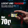 Sensormodus und 5 Beleuchtungsmodi: Halten Sie den Schalter links 5 Sekunden lang gedrückt, bis das blaue Licht aufleuchtet, um den Sensormodus einzuschalten, der Sie freihändig macht. Und Sie können es steuern, indem Sie Ihre Hände innerhalb von 10 cm bewegen. Unser Scheinwerfer verfügt über 5 Beleuchtungsmodi: weißes Licht(Hoch, Niedrig, Blinken) , Rotlicht, Rotlicht blinkend. Einfach, die Modi zu ändern, um alle Ihre Anforderungen zu erfüllen.