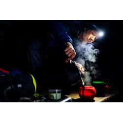 Homogene, komfortable Beleuchtung im Umgebungsbereich: breiter, homogener Lichtkegel für eine komfortable Sicht im unmittelbaren Nahbereich der Hände oder Füße. Drei Leuchtstufen: MAX BURN TIME (maximale Leuchtdauer), STANDARD (optimales Verhältnis Leuchtkraft/Leuchtdauer) und MAX POWER (maximale Leuchtkraft).