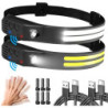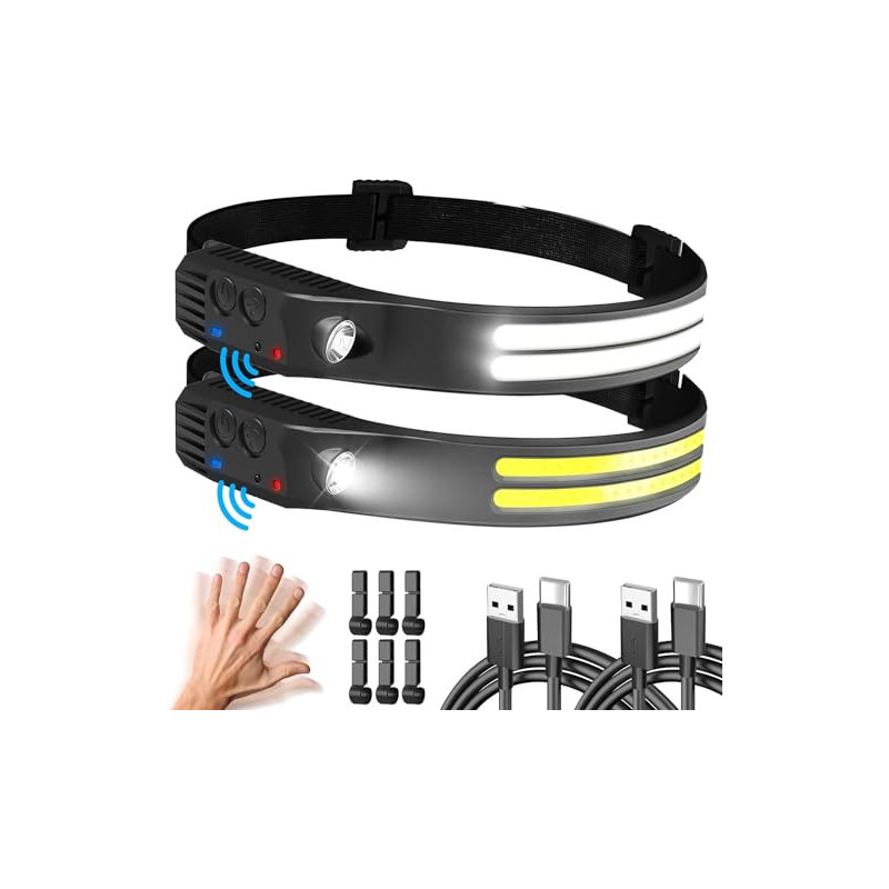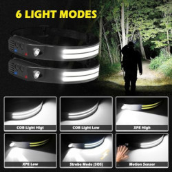 Mehrere Lichtmodi: Unsere Stirnlampe hat 6 verschiedene Lichtmodi für alle Situationen, darunter COB-Licht Hoch, COB-Licht Niedrig, XPE Hoch, XPE Niedrig, Stroboskopmodus und Bewegungssensor, den Sie mit der Hand steuern können.