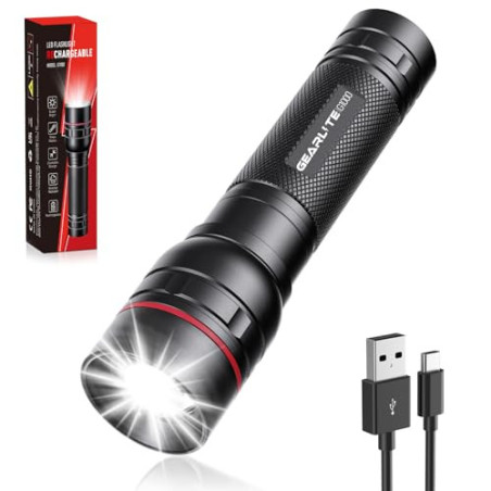 Tragbar + Extrem Hell: Die kompakte LED Taschenlampe ist ca. 12*3,3cm groß und kann leicht in einer Tasche oder einem Rucksack mitgeführt werden. Taschenlampe LED aufladbar mit Lanyard kann einfach mit einer Hand bedient werden. Der aufgerüstete Chip sorgt für ein gleichmäßiges, helles Licht. Die ultrahelle Mini Taschenlampe kann die gesamte Garage ausleuchten.