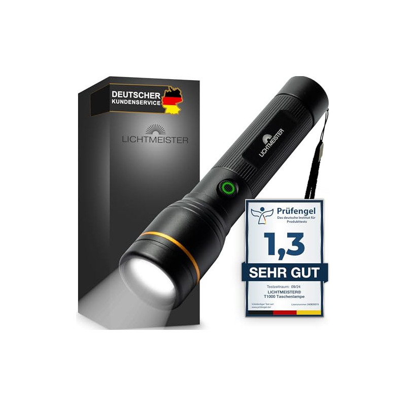 ✅ EXTREM HELL - dank 1000 Lumen wird die Nacht zum Tag, wenn du deine Taschenlampe von LICHTMEISTER anschältst.