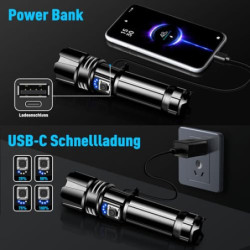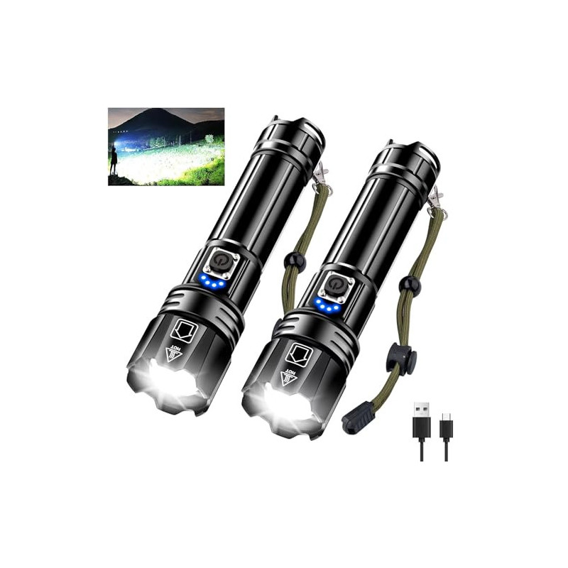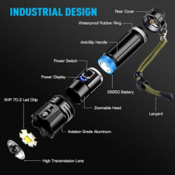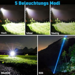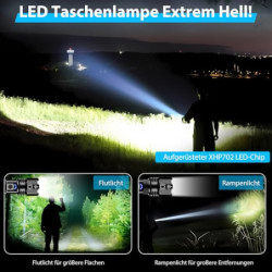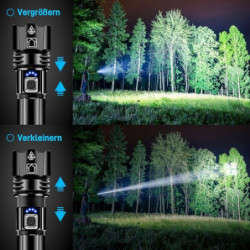 【500000 HIGH LUMENS & SUPER BRIGHT】Taschenlampe hat einen eingebauten XHP70.2 Upgrade-Chip mit einer leistungsstarken 500000 Lumen Leistung, bietet Ihnen die große Lichtwelt, die Sie wollen, leistungsstarke Taschenlampe ist etwa 30 mal heller als gewöhnliche Glühlampen. Helligkeit ist mächtig, so schießen Sie bitte nicht direkt in die Augen.