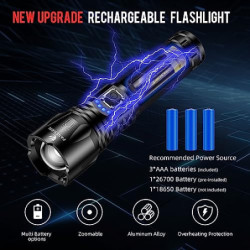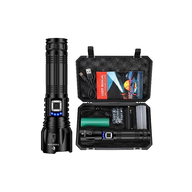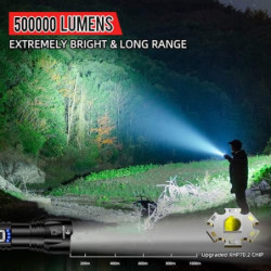 【TASCHENLAMPE LED 500000 LUMEN】Fanesen LED Taschenlampe 500000 Lumen mit fortschrittlichem ausgestattet XHP70.2 LED-Chips, die Lichtquelle ist stabiler und die Lichtdurchdringung ist stärker. Der Tactical Taschenlampe das Licht Ist Durchdringender Und Der Lichtstrahl Durchdringt Staub Und Nebel Gut, Wenn Die Sicht Schlecht Ist,und ist daher besonders nützlich bei nebligen und regnerischen Bedingungen mit schlechter Sicht.