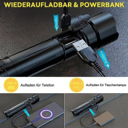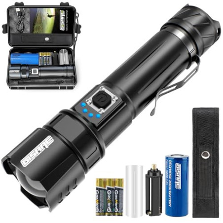【Ultra leistungsstarke LED Taschenlampe】 Leistungsstarke Gisaae taschenlampe led mit verbessertem XHP70 Quad-Core-Chip und bis zu 10.000 Lumen. Hller als die anderen wiederaufladbaren original taschenlampe. Leistungsstarke wiederaufladbare taktische taschenlampe von kann problemlos ein 120 m² großes fußballfeld beleuchten und sich auf objekte bis zu 500 Meter konzentrieren. Gisaae taschenlampe camping ist geeignet für outdoor-Sportarten, spaziergänge mit dem hund usw.