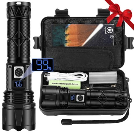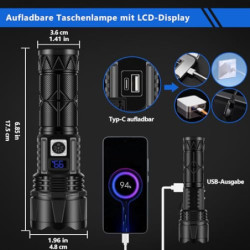 Extreme Helle Taschenlampe: Mit 500.000 Lumen ist die J100 LED-Taschenlampe eine der hellsten auf dem Markt und bietet eine extrem helle Ausleuchtung in einer Vielzahl von Umgebungen. Die Taschenlampe verfügt über eine Zoomfunktion, die im Spotlight-Modus Straßenschilder in einer Entfernung von bis zu 1.800 Metern und im Flutlicht-Modus eine Campingfläche von fast 300 Quadratmetern beleuchtet
