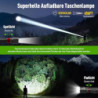 3 Modi & Zoombar: Taschenlampe Led Aufladbar enthält 3 praktische Modi (High, Medium, Strobe) für den täglichen Gebrauch. Zoombare Mini Taschenlampe für verschiedene Situationen. Zoom in für eine größere Leuchtweite. Zoom out für eine größere Leuchtweite. Taschenlampe Klein maximale Entfernung kann bis zu 200M betragen