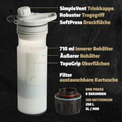 WASSER ÜBERALL AUFBEREITEN: Macht verschmutztes Wasser sicher zum Trinken. Ideal für Outdoor-Life-Abenteuer (Wandern, Camping, Backpacking, Angeln, Bushcraft), weltweite Reisen und Überlebenssituationen. Einfach Füllen. Drücken. Trinken!