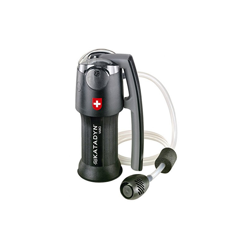 Katadyn Vario Wasserfilter aus der Backcountry Serie für 1-4 Personen, Doppelkolben, Gummifuss für sicheren Stand, integriertes Flaschengewinde