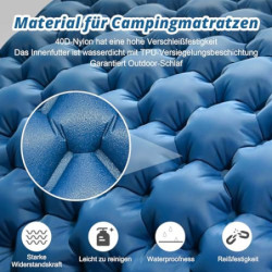 Hochwertiges Material: Die isomatte camping selbstaufblasend aus Nylon mit TPU-Beschichtung, umweltfreundlichem, biologisch abbaubarem Material; das Material ist weich und hautfreundlich, mit ausgezeichneter Wasserbeständigkeit, Luftdichtigkeit und Reißfestigkeit, leicht zu reinigen, wenn es Staub oder Schmutz gibt, wischen Sie einfach vorsichtig