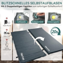 JA! SELBSTAUFBLASEND - Die isomatte selbstaufblasend entfaltet sich automatisch, ohne die Notwendigkeit von Fußpumpen, Luftpumpen oder ähnlichen Gerätschaften, und nimmt binnen kürzester Zeit ihre maximale Dimension an. Durch die Konzeption mit zwei Ventilen wird eine beschleunigte Eigeninflation begünstigt.