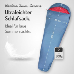 SCHLAFSACK ULTRALEICHT, KLEIN UND KOMPAKT: Leicht, dünn und kleines Packmaß: ca. 700 g, komprimiert nur 25 x 14 cm, ultralight und mini