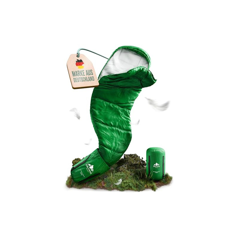 🏕️ KOMFORT - Materialien wie 380T Nylon & kuscheliges Innenfutter [100GSM] bieten beste Bedingungen für milde Sommernächte ab 12°C! 1A Wärmeregulierung durch beidseitigen Reißverschluss.