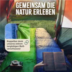🏕️ KOMBINIERBAR - Verbinde zwei oder mehr Schlafsack Sommer miteinander durch die beidseitigen PREMIUM Reißverschlüsse mit speziellen Anti-Klemm Leisten - leichter Einstieg & lange Haltbarkeit!