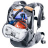 In der einseitigen Pickel- und Stockhalterung, dem verstaubaren Helmnetz, der diagonalen Ski-Fixierung, sowie der frontalen Snowboard-Fixierung lässt sich Ihr Equipment sicher am Rucksack befestigen