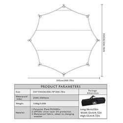 【Wasserdicht und Sonnenschutz】Dieser Camping zeltplane besteht aus 210 Polyestergeweben mit einem wasserdichten Druck von 2000 oder mehr und die Nähte sind speziell hitzegepresst, um das Auslaufen von Regenwasser zu verhindern. Die Rückseite der zelt plane ist mit Silber beschichtet, um 50+ UV-Schutz zu bieten