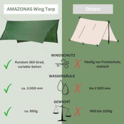 AMAZONAS WING TARP – Das Hängematten-Tarp schützt deine Ultraleicht-Hängematte zuverlässig vor Wind und Regen, mit variablem Windschutz und flexibel einsetzbar.
