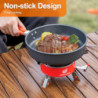 Bequeme und sichere Verriegelungsgriffe - Der Topf und die Bratpfannen haben einen mit einem Handgriff einklappbaren Griff. Dieses Design sorgt für einen sicheren und zuverlässigen Halt beim Kochen und kann zur kompakten Aufbewahrung einfach zusammengeklappt werden. Unser multifunktionale Camping Kochset erfüllt alle Ihre Bedürfnisse beim Kochen im Freien.