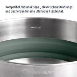 LEISTUNGSSTARKES DESIGN: Dieser langlebige Reise-Kochtopf ist aus hochwertigem Edelstahl und lebensmittelechtem, hitzebeständigem Silikon gefertigt. Sein dreilagiger Boden verteilt die Wärme gleichmäßig und eignet sich für Gas- und Induktionskochfelder.