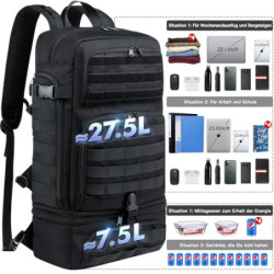 【 MULTIFUNKTIONELLES DESIGN】 Der Wanderrucksack herren verfügt über ein multifunktionales 2-in-1-Design: Wanderrucksack mit großem Fassungsvermögen + abnehmbare isolierte Lunch-Tasche. Der obere Teil des Outdoor-Rucksacks verfügt über 8 Fächer zum Sortieren verschiedener Gegenstände, darunter ein Laptop-Fach für optimalen Schutz des Laptops; der untere Teil der herausnehmbaren Lunchbag dient als Nass-/Trockenlager für gekühlte Getränke, Sandwiches, Obst und andere Lebensmittel.