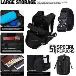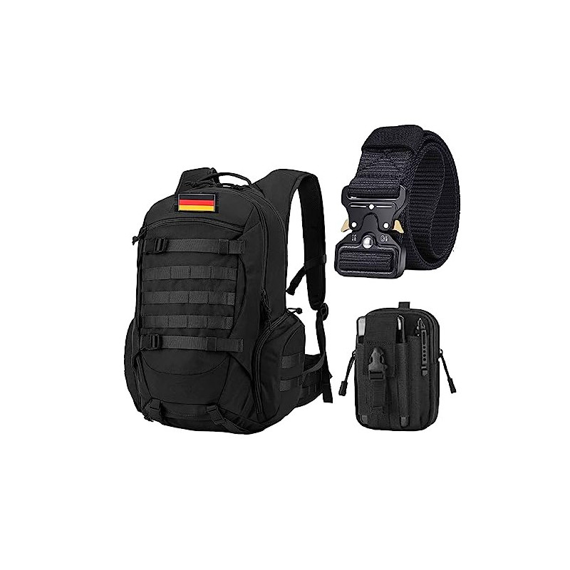 ➤ 【Kompakt aber geräumiger taktischer Rucksack】 -Die maximalen Abmessungen des Rucksacks: Höhe ca. 50 cm x Breite ca. 31,5 cm x Tiefe ca. 22 cm, große Kapazität bietet genugend Platz für ein Laptop, ein Tablet, notwendige Kleidung und viele kleine Dinge. Das zusätzliche Taschensystem in diesem Militärrucksack sorgt für Ordnung in all Ihren Kleinigkeiten. Verschluss: Reißverschluss, Rucksack