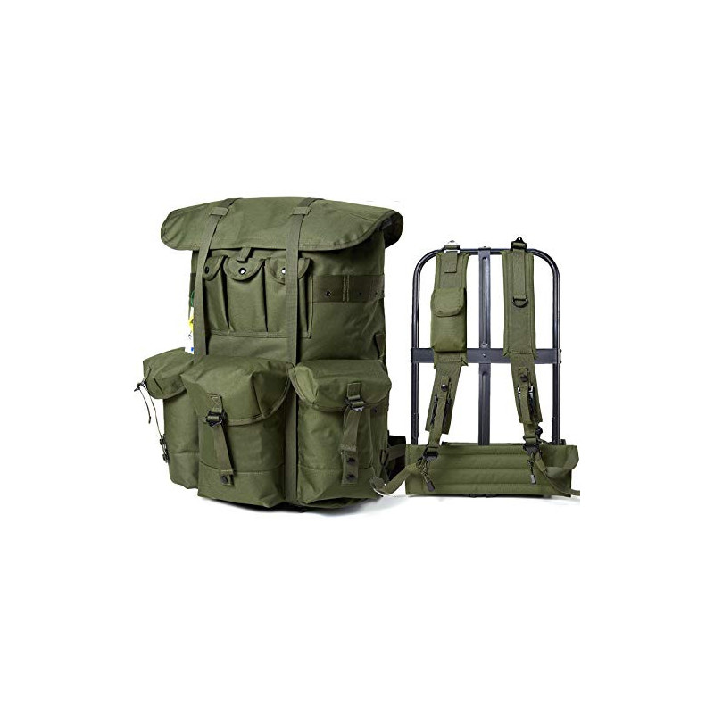 Military ALICE Pack große Größe, Hauptfach 23 "x 14,5"10 "/58 * 37 * 24,5 cm, Kapazität über 50L, über 50 lbs Lastgewicht, 6,5lbs Selbstgewicht. Verwenden Sie High Density 1000D Wasserdicht eisern zwei Schichten PU Beschichtung behandelt Oxford Stoff mit UTX und Form Metallschnallen. Es ist in Army Olive Drab Green Color. PACKING: Inklusive: 1x ALICE Combat Field Pack, 1x ALICE Pack Externer Rahmen (mit 2 Schultergurten, 1x Nieren-Taille-Gürtel).
