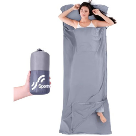RUHIG SCHLAFEN UND FRISCH BLEIBEN: Halten Sie Ihren Schlafsack sauber und genießen Sie einen frischeren, hygienischeren Schlaf! Unser ultraleichter Sportneer Schlafsackliner ist leicht zu waschen, und die integrierte Kissenhülle bietet zusätzlichen Komfort und Schutz. Perfekt als Schlafsack für Erwachsene und Reiselaken, um eine erholsame Nacht zu verbringen.