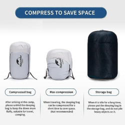 【Leicht und tragbar】 Die Schlafsackgröße von 210 x 82 cm ist für die meisten Erwachsenen geeignet. Mit Gänsedaunen gefüllt, leicht, leicht zu tragen und leicht zu komprimieren, wodurch Platz im Rucksack gespart wird. Sie können es überall hin mitnehmen, wo Sie wollen.