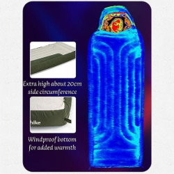 Dieser Auto-Camping-Schlafsack ist geeignet für Familien-Rucksacktouristen. Es ist breit, lang und bequem. Sie können Ihr Kind in kalten Nächten leicht in die Tasche kuscheln und sie haben bei Bedarf viel Platz für Sie beide. Es lässt sich vollständig in eine große flache Steppdecke für warme Nächte öffnen und Sie können sie einfach als Decke verwenden.